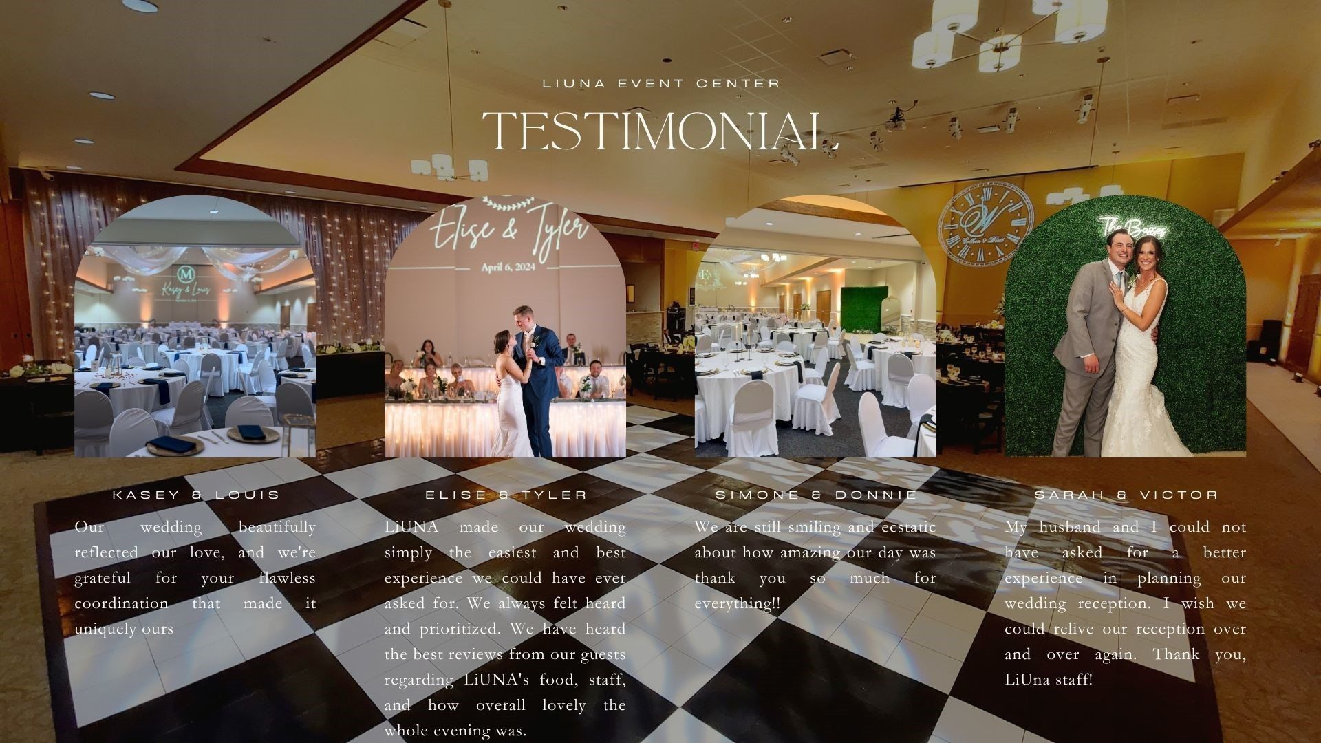 LiUNA was absolutely incredible! I would hands down recommend them 100/10. From their incredible staff (Nancy, Kip, and Molly) to Brock the DJ, the beautiful venue inside and out, the delicious food, and so much more.. choosing LiUNA was one of the best wedding decisions we made. They are very quick to respond to emails, they truly want you to be happy and they will bend over backwards for you. Molly and Brock dealt with issues on the day of flawlessly. We loved that we got to go to multiple tastings (which we always packed and they help you really feel what it would be like on the night of). They are professional and kind. We loved the 2-tiered head table, the twinkle lights, the 2 bars, the digital sign behind the head table with our names, the room was the perfect size for us, good sized dance floor and so much more. We received tons of compliments afterwards about the food and the venue. Thank you for making our wedding day amazing! *Choose LiUNA - you won't regret it!*